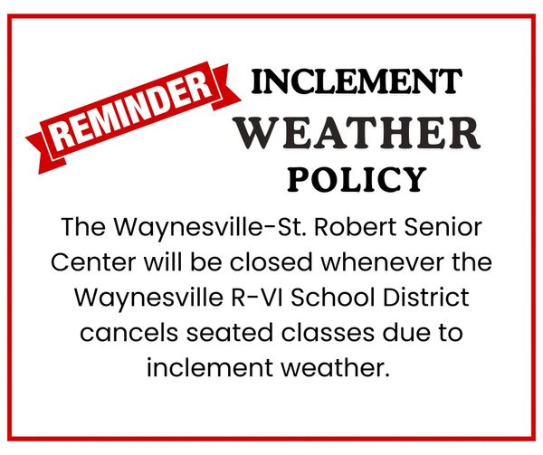 The Waynesville-St. Robert Senior Center will be closed for the holidays on December 24 & 25, 2025